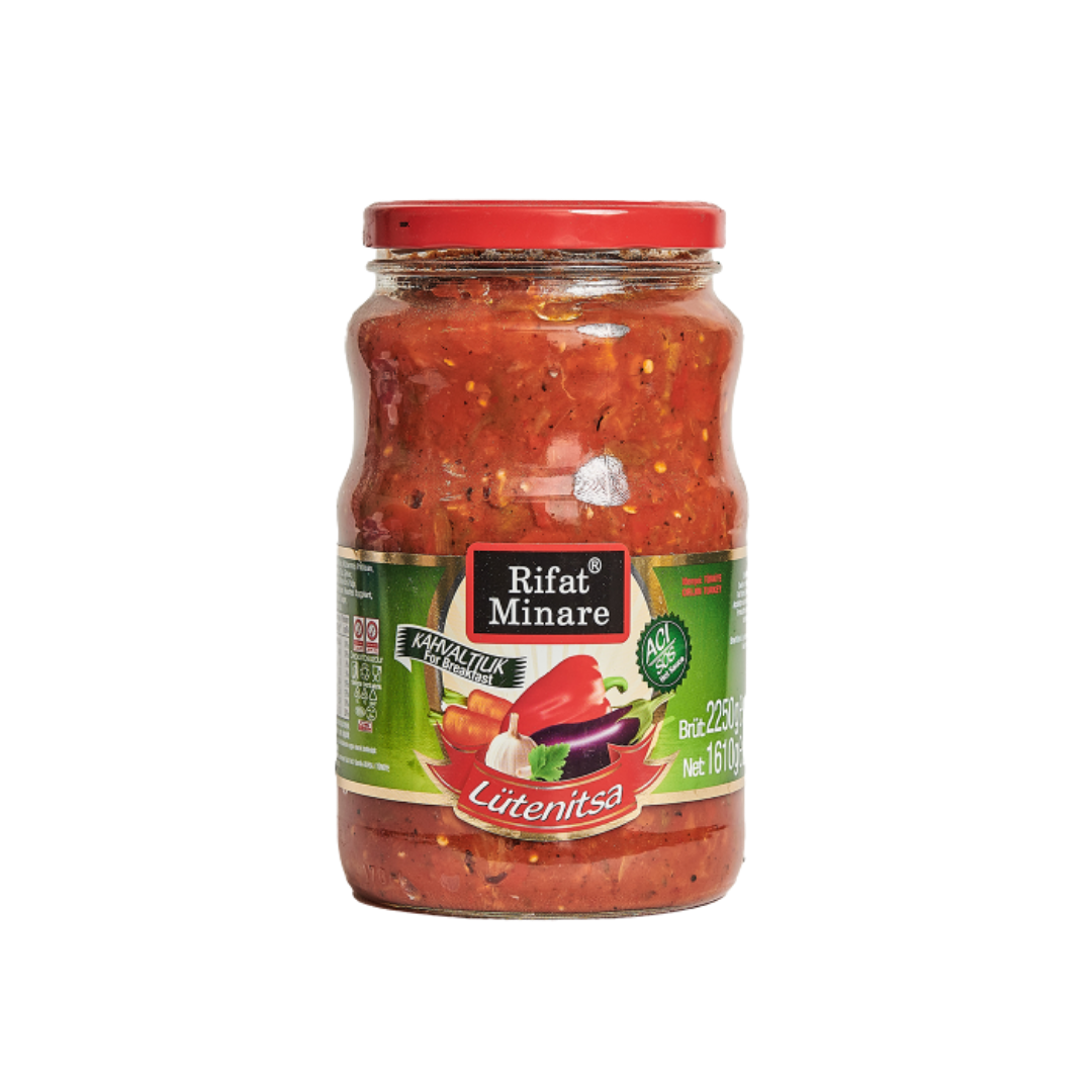 Közlenmiş acı biber, közlenmiş patlıcan, domates, havuç, maydonoz, tuz, şeker, çeşitli baharatlar, sarımsak ve mısır özü yağıSerin ve kuru yerde saklayınız. Güneş ışığından koruyunuz.Türk Gıda Kodeksine uygun üretilmiştir.